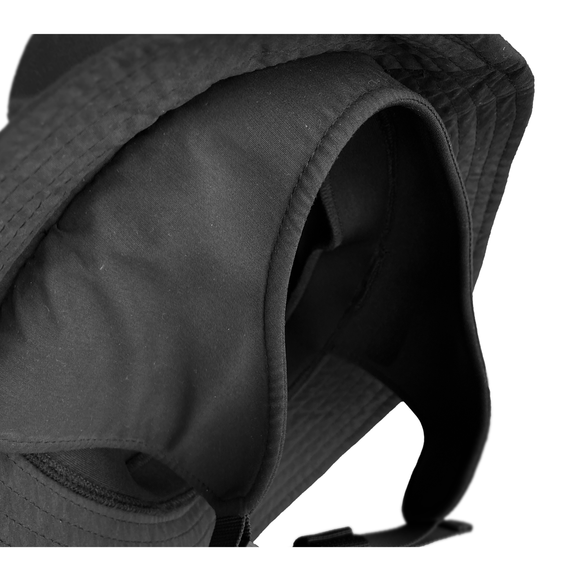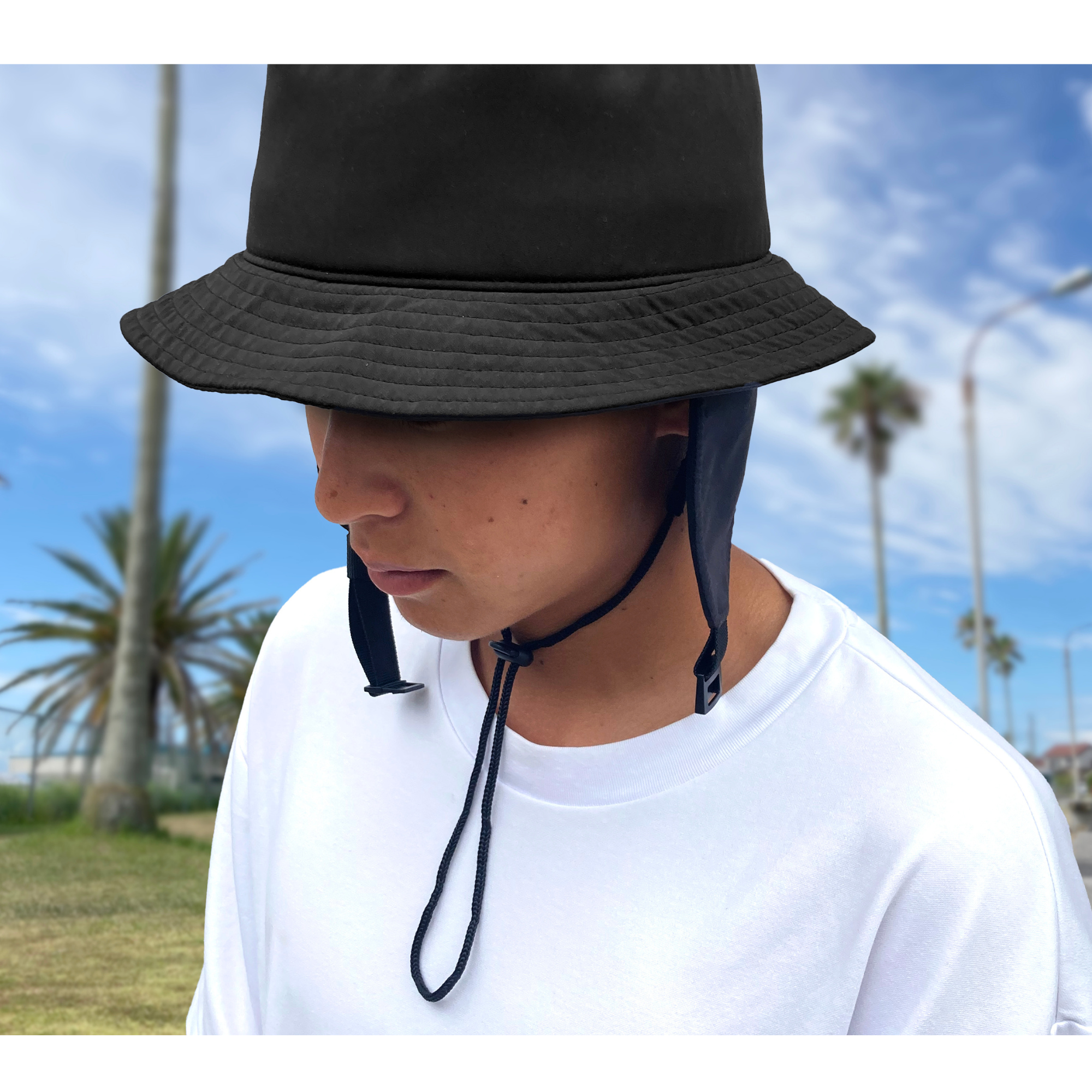 真冬定番の防寒キャップのスタイルが苦手な方におススメ。素材は夏用ハットに見えますが、1.0mm厚ウェットスーツ素材で仕上げており、簡易保温を備えたスタイリッシュなバケットハット。